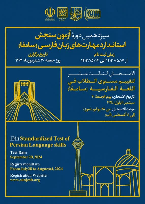 سیزدهمین دوره آزمون سنجش استاندارد مهارت های زبان فارسی، بر اساس تصویر پیوست برگزار می‌شود.